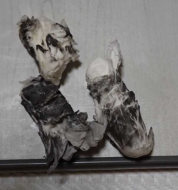これがブラシにてゴシゴシしたあと通したティッシュです。見えづらいかもしれませんが、なんか金属の破片と見えます。(右上)